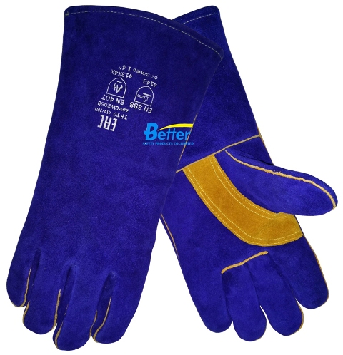 High Quality Blue Cow Split Leather Welder Gloves(BGCW204)